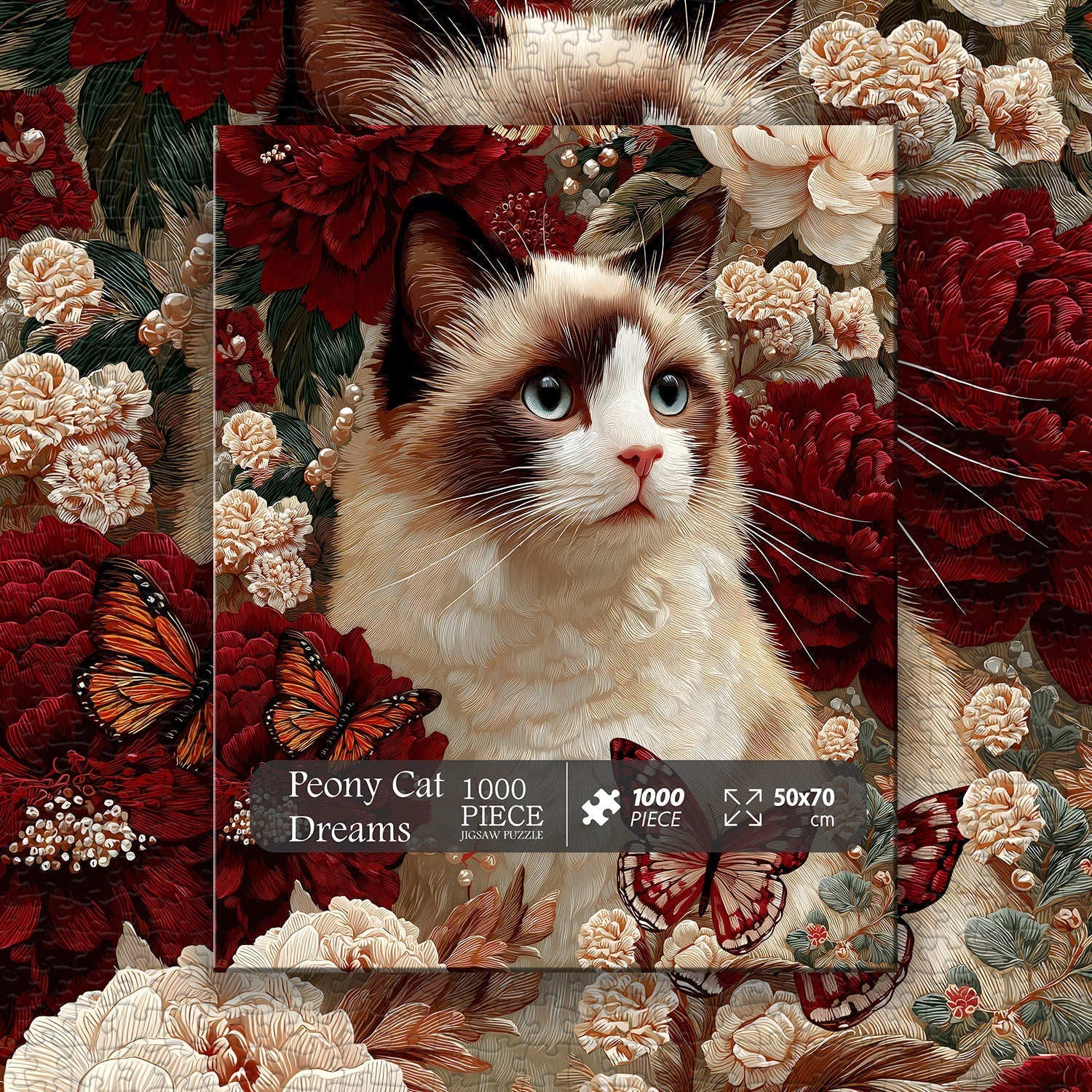 Peonía Gato Sueños Rompecabezas 1000 Piezas